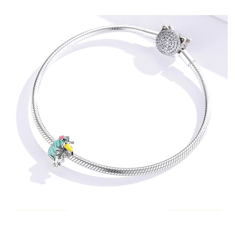 Charms doskonale komponuje się z bransoletkami modułowymi Pavos, Pandora i innymi modelami o podobnym systemie. Może być noszony samodzielnie jako wyjątkowy akcent stylizacji lub w połączeniu z innymi tropikalnymi motywami – palmami, flamingami, czy słońcem.