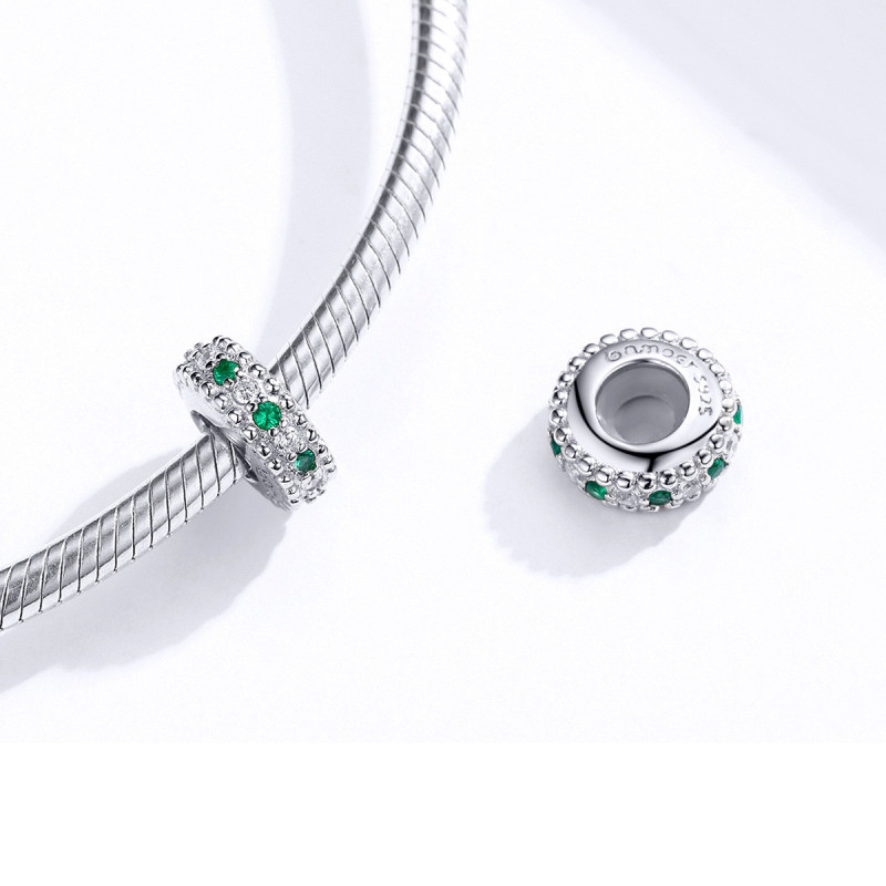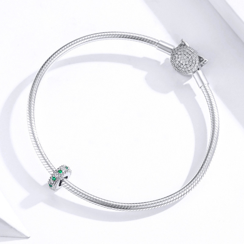 Wprowadź odrobinę luksusu i harmonii do swojej biżuterii z niezwykle eleganckim charms’em Zielony Blask Elegancji, wykonanym z najwyższej jakości srebra próby 925 i zdobionym błyszczącymi cyrkoniami w odcieniach bieli i szmaragdowej zieleni. Ten model zachwyca klasyką i subtelną nowoczesnością, będąc doskonałym wyborem dla kobiet, które pragną podkreślić swoją pewność siebie, styl i wyjątkowość.