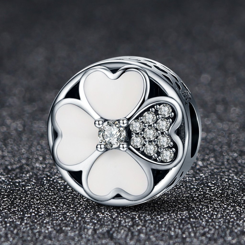 Zabierz ze sobą odrobinę szczęścia i elegancji dzięki wyjątkowemu charmsowi Czterolistna Koniczyna z Cyrkoniami i Emalią, wykonanemu z najwyższej jakości srebra próby 925. Ten niezwykle kobiecy wzór symbolizuje pomyślność, nadzieję, wiarę i miłość – cztery wartości, które od wieków przypisuje się czterolistnej koniczynie, uznawanej za amulet szczęścia.