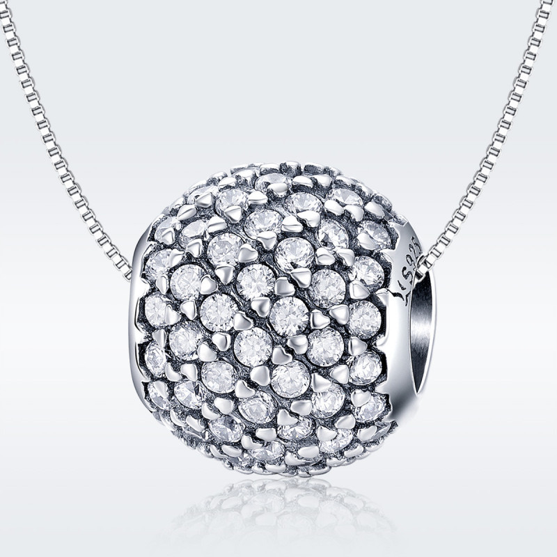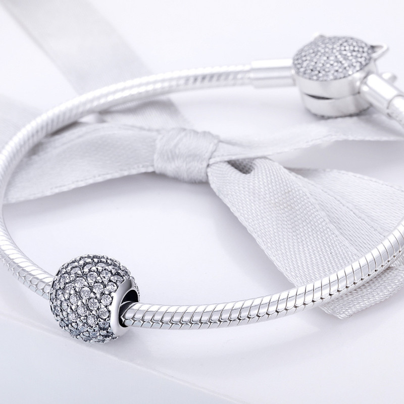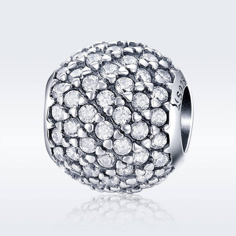 Każda cyrkonia została ręcznie oprawiona w srebro, tworząc hipnotyzujący efekt pełnej tafli blasku. Charms lśni niczym miniaturowa kula diamentowa, odbijając światło z każdego kąta. Doskonała precyzja wykonania sprawia, że powierzchnia jest gładka, a jednocześnie pełna życia – każdy ruch nadgarstka wydobywa z niej tysiące refleksów.