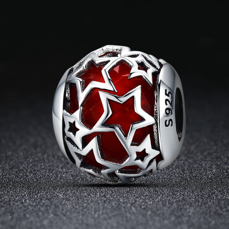 Zachwyć się magią kosmosu dzięki tej wyjątkowej zawieszce do bransoletki z motywem srebrnych gwiazd na tle głębokiej, czerwonej emalii. Wykonany z wysokiej jakości srebra próby 925, charms emanuje elegancją i energią, dzięki czemu świetnie uzupełni każdą kolekcję biżuterii modułowej typu Pandora. Idealny zarówno na co dzień, jak i na wyjątkowe okazje.
