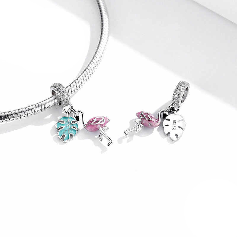 Charms „Flamingo z Liściem” doskonale komponuje się z bransoletkami modułowymi Pavos i Pandora, ale również z innymi systemami, tworząc niepowtarzalny zestaw biżuterii pełen egzotycznych akcentów. To biżuteria, która świetnie pasuje do letnich stylizacji, ale również stanowi doskonały wybór na prezent dla miłośniczki flamingów, tropikalnych klimatów i słonecznych dni.