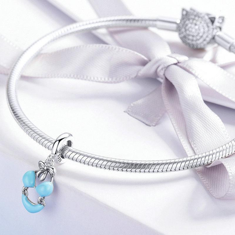 Ten delikatny charms przyciąga wzrok lekkością i subtelnym urokiem. Bikini, ozdobione ręcznie nakładaną emalią w kolorze błękitu, symbolizuje lato, wypoczynek nad wodą i radość z każdej chwili spędzonej w słońcu. Urocza kokardka na górze, wykonana z tego samego srebra 925, dodaje eleganckiego wykończenia i wdzięku. Charms "Bikini" to biżuteria, która emanuje letnią radością, świeżością i lekkim, kobiecym stylem.