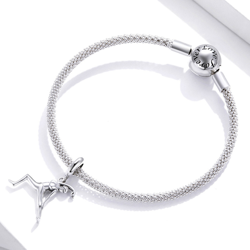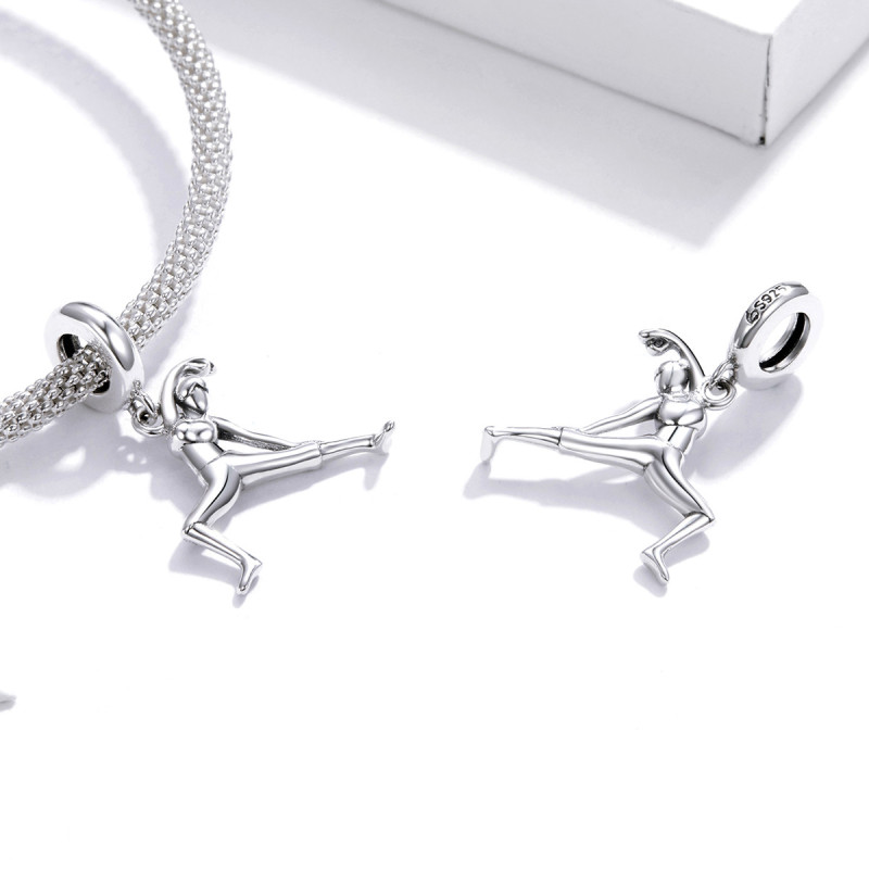 Każdy szczegół tej zawieszki został zaprojektowany z dbałością o detale. Zawieszka przedstawia postać w pozie, która symbolizuje otwartość, równowagę i harmonię, podkreślając postawę ciała i lekkość wykonania. Wykonanie z srebra 925 zapewnia trwałość, a gładka powierzchnia charmsa odbija światło, tworząc elegancki połysk. Zawieszka jest subtelna, ale pełna energii, idealna dla kobiet, które pasjonują się jogą lub cenią wewnętrzną harmonię.