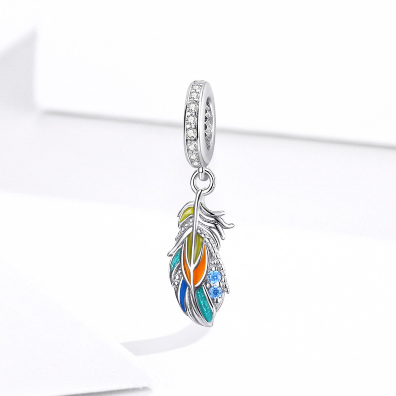 Charms do bransoletki – Kolorowe Pióro | Srebro 925, emalia i cyrkonie