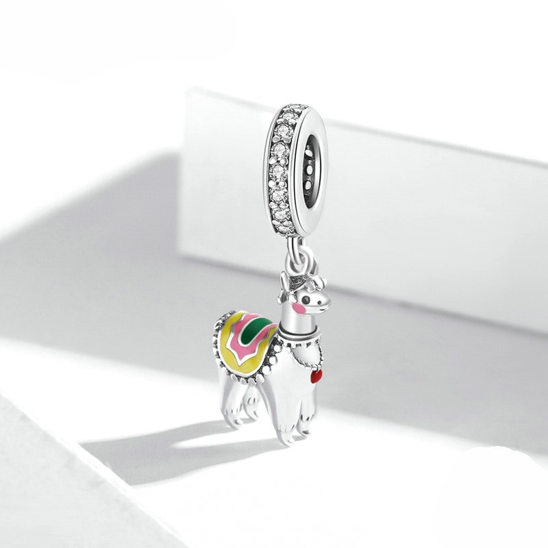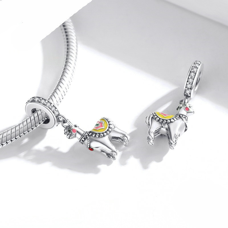 Pozwól, by Twoja bransoletka opowiedziała historię pełną ciepła, radości i pozytywnej energii. Ten wyjątkowy charms w kształcie uroczej alpaki został wykonany z najwyższej jakości srebra próby 925, a następnie ręcznie ozdobiony kolorową emalią w odcieniach różu, żółci i zieleni. Subtelne błyski cyrkonii na uchwycie dodają elegancji i podkreślają artystyczny charakter tej biżuterii.