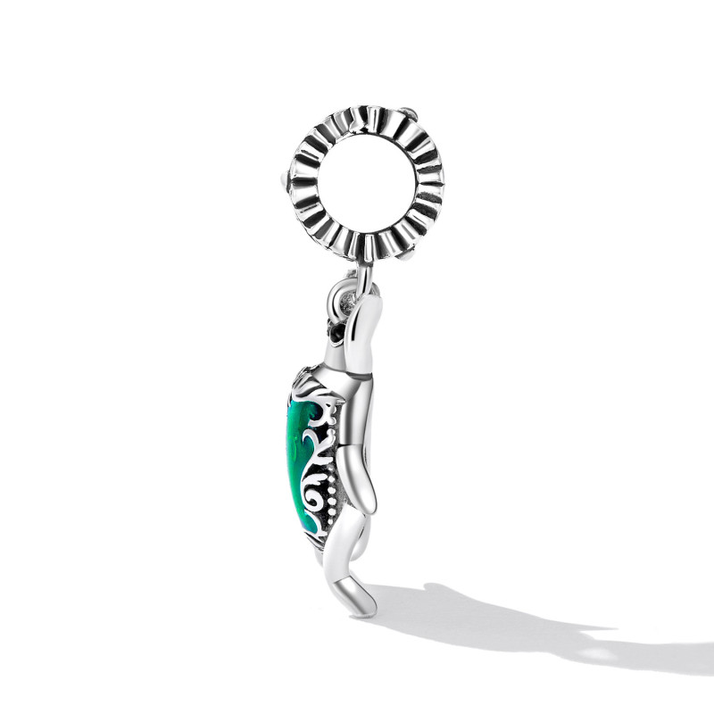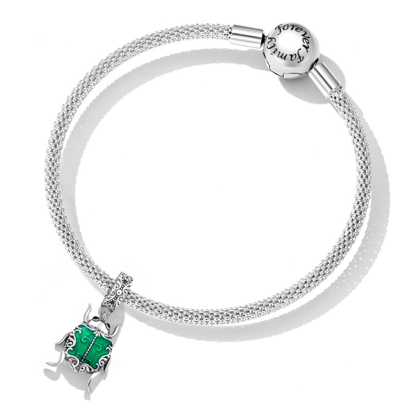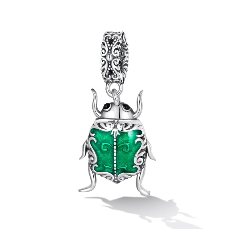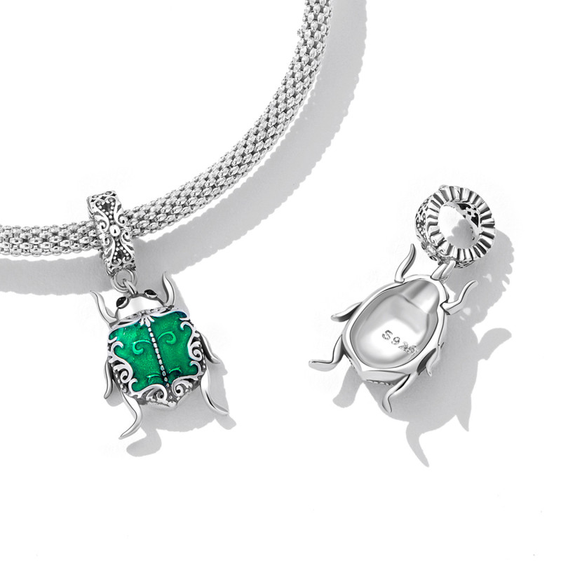 Wprowadź nutę mistycyzmu i elegancji do swojej kolekcji biżuterii z tą wyjątkową zawieszką w kształcie skarabeusza – starożytnego symbolu odrodzenia i szczęścia. Wykonana z najwyższej jakości srebra próby 925, ozdobiona szmaragdowozieloną emalią i misternymi zdobieniami, ta zawieszka przyciąga spojrzenia i dodaje głębi każdej stylizacji.